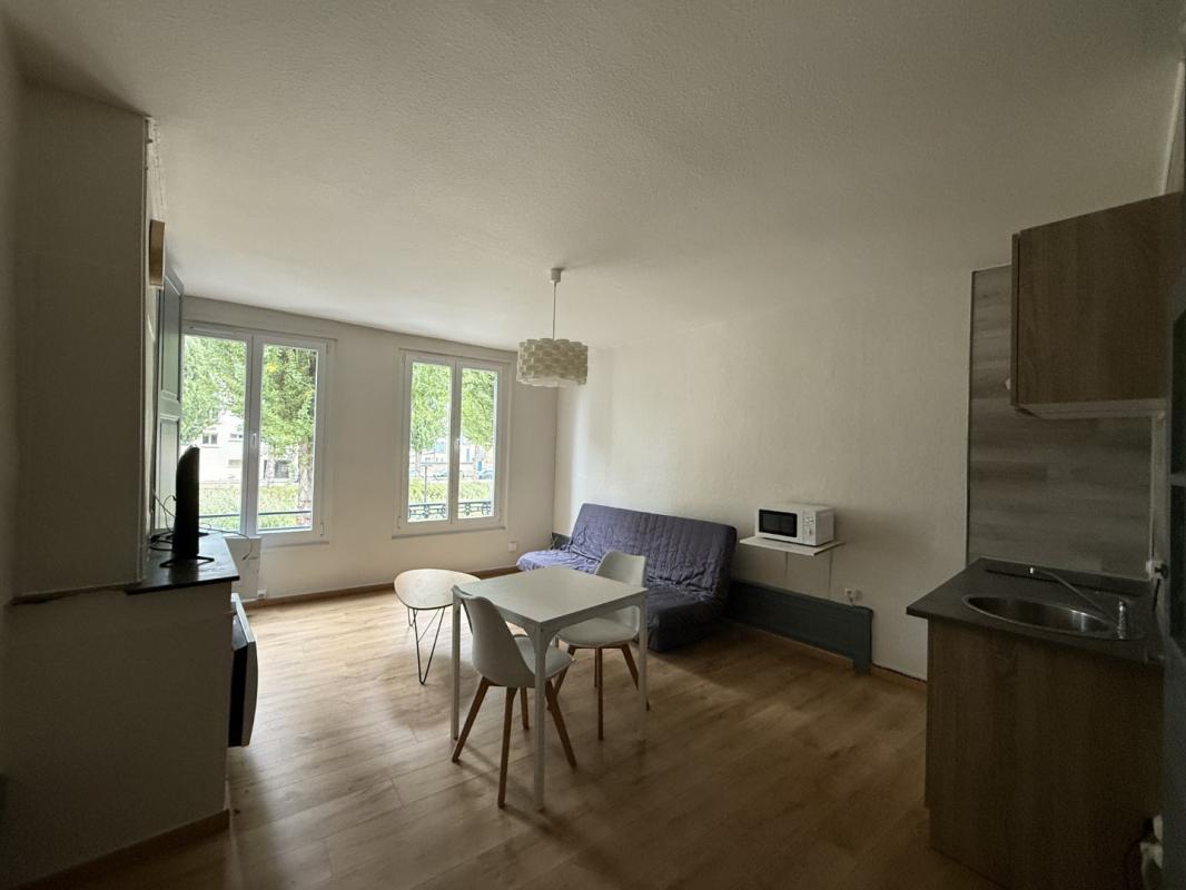 À louer, charmant studio meublé situé à deux pas de la gare, L’appartement dispose d’une grande pièce lumineuse avec vue sur l’Ornain ouvrant sur une cuisine équipée et aménagée , une salle de bain fonctionnelle avec machine à laver.