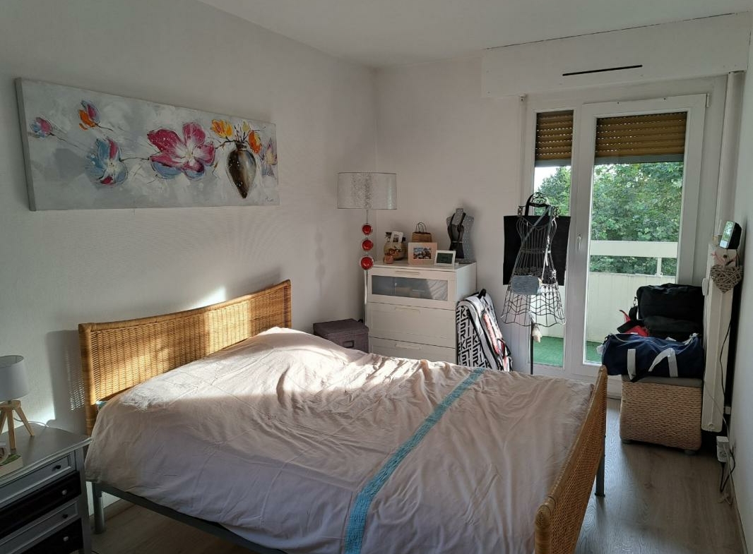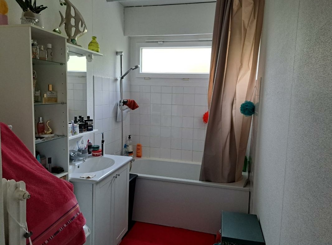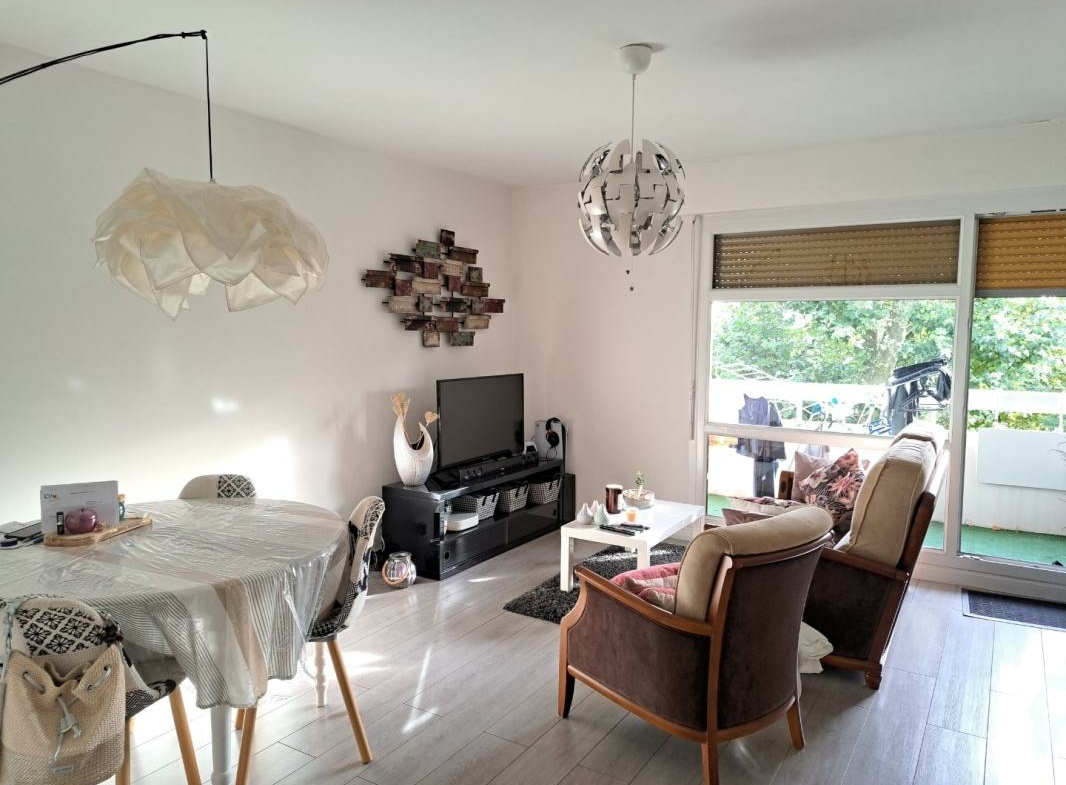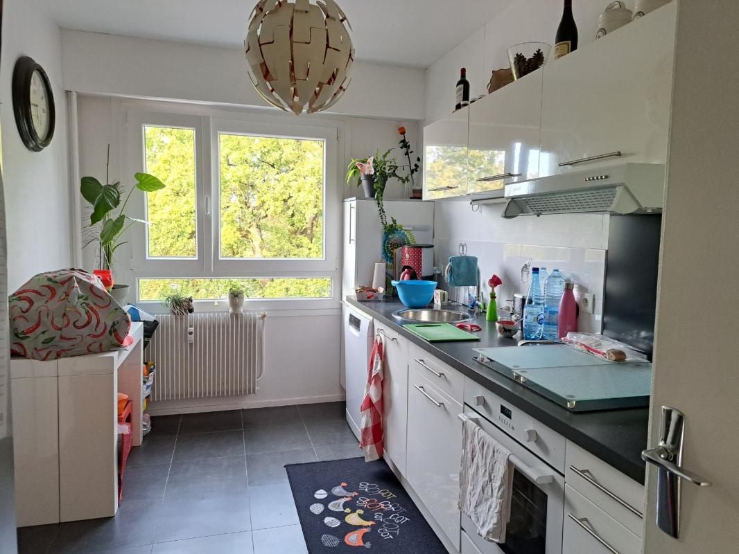 Un appartement T3 de 70 m² comprenant une entrée, couloir avec placards, cuisine équipée, cellier,
