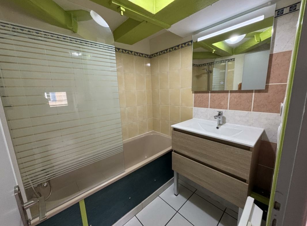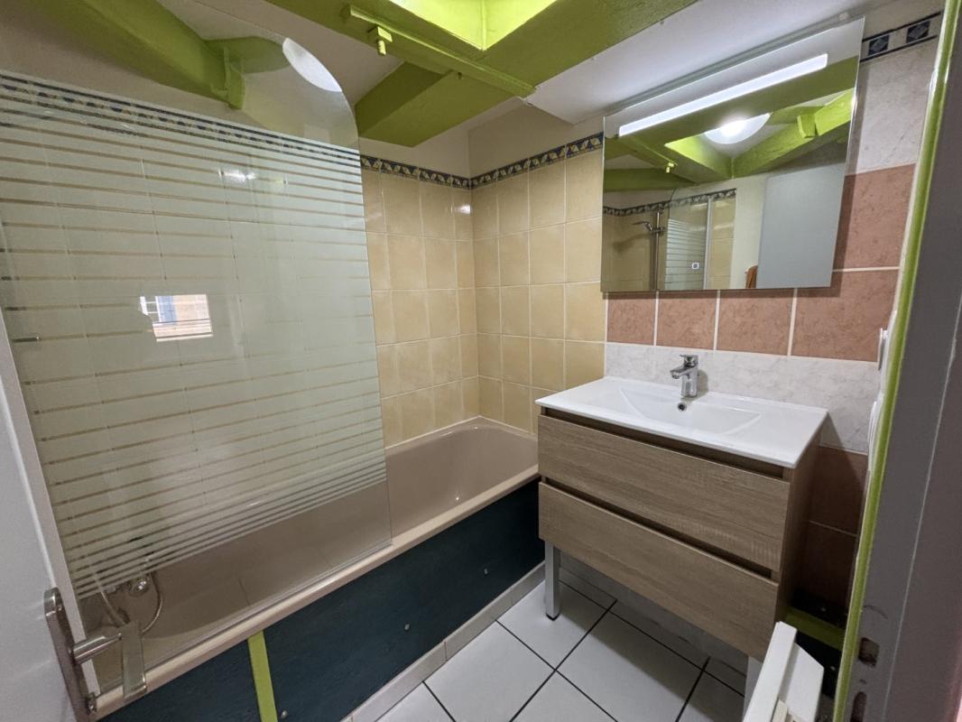 En centre-ville dans un immeuble avec entrée sécurisé, ce T2 atypique situé au 2ème et dernier étage offre un agencement fonctionnel. L’entrée dessert l’espace nuit avec une chambre qui bénéficie de volets roulants domotiques, programmables la visite se poursuit sur une salle de bain avec baignoire.
