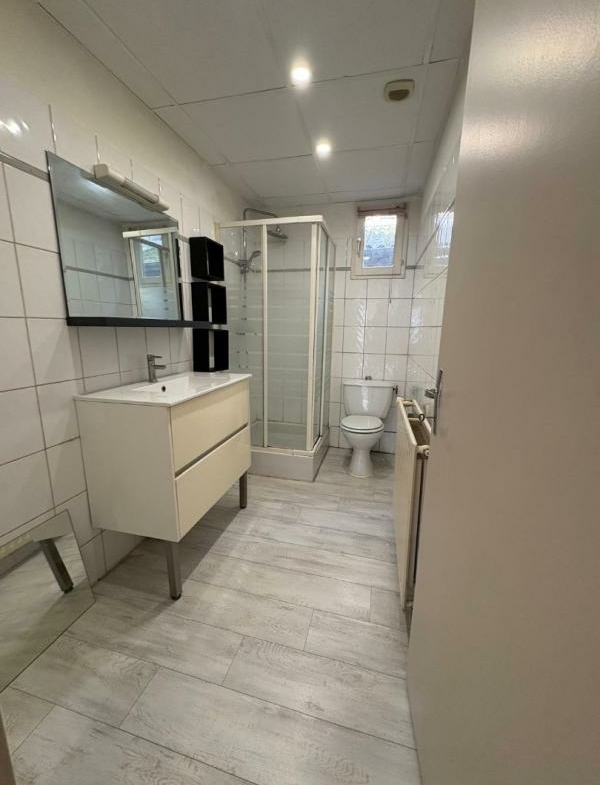 Un bel appartement rénové de type F2 d’une surface de 45 m², situé en rez-de-chaussée surélevé, comprenant : pièce principale, petite cuisine, dégagement avec placard, salle d’eau avec WC, chambre.