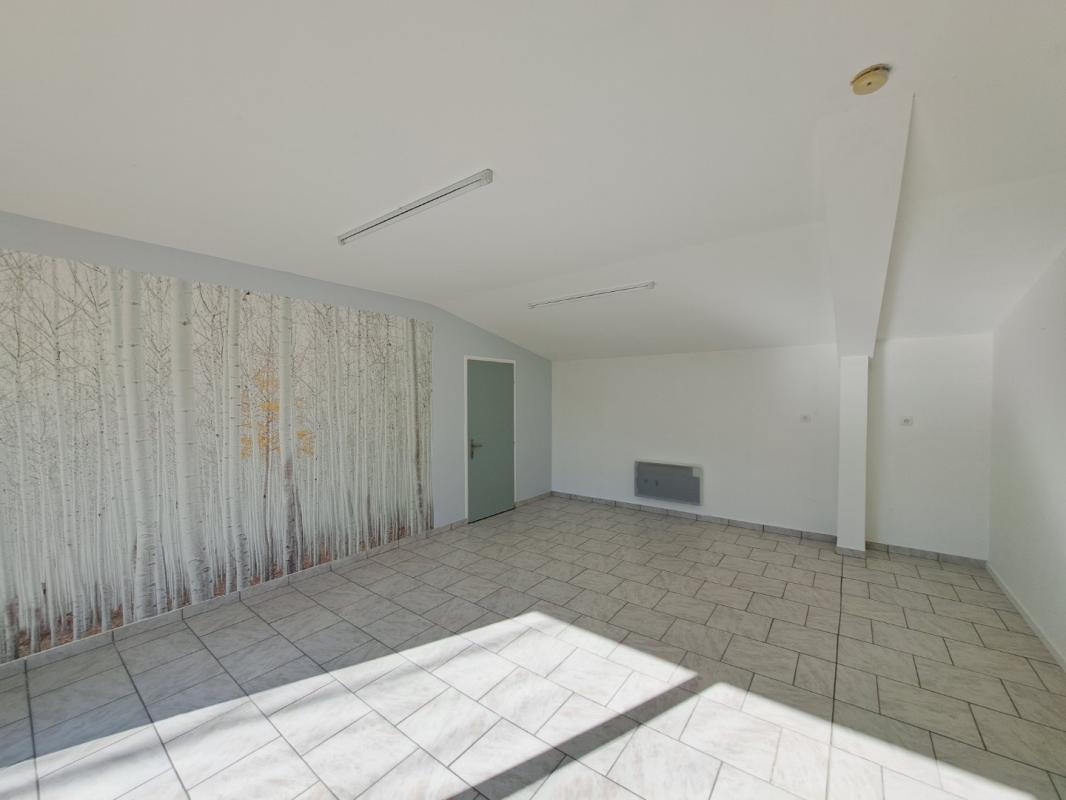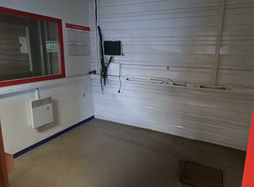 Local commercial avec grand espace de vente, vitrine, bureaux, et annexe pour stockage, coin sanitaire.
