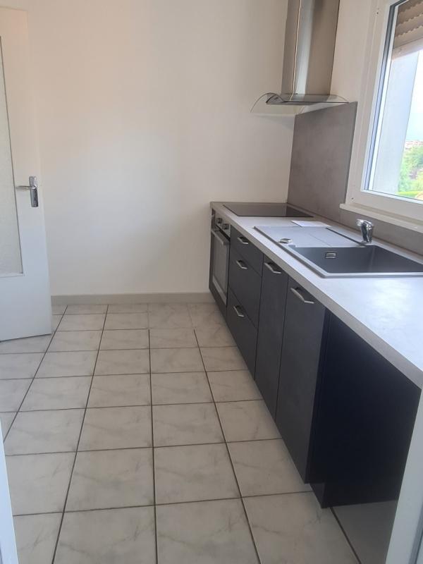 Appartement F3 de 70m² situé au 2eme étage d’un immeuble avec ascenseur, il comprend une entrée avec placard, une cuisine équipée avec un cellier, un séjour avec balcon, un salon, une chambre, une salle d’eau, un WC, un garage en annexe.