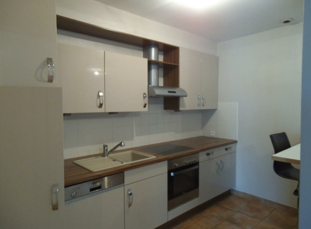 Cuisine équipée ouverte sur séjour avec véranda, buanderie avec accès garage