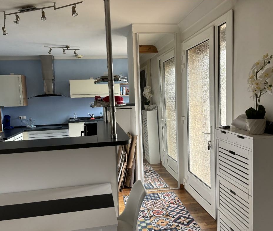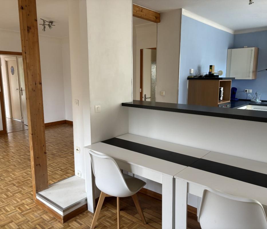 Proche centre-ville, bel appartement de type F4 comprenant une entrée, une grande cuisine meublée/équipée ouverte sur un séjour lumineux, trois chambres, une salle d’eau avec douche et baignoire, un dressing et un WC séparé. Un sous-sol avec un coin cave et un grand garage. Un jardin clos et une grande terrasse bien exposée.