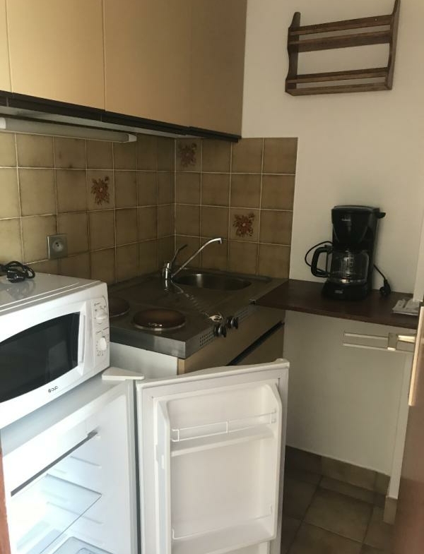Grand F1 meublé situé dans une résidence de standing comprenant une entrée, un couloir avec un grand placard, une kitchenette indépendante, une grande pièce principale lumineuse avec placard et une buanderie. Un emplacement de parking souterrain et une cave.
