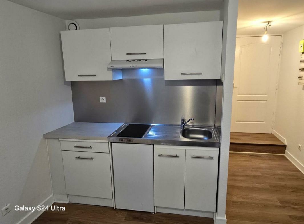 Il se compose d’une pièce de vie lumineuse, d’une kitchenette équipée( plaques, frigo, rangements) et d’une salle d’eau moderne.