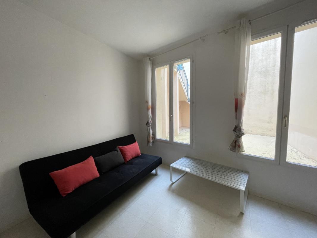 CENTRE VILLE : Studio partiellement meublé en rez-de-chaussée, comprenant pièce principale avec partie kitchenette équipée, salle d’eau et WC.
