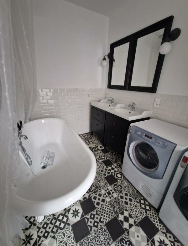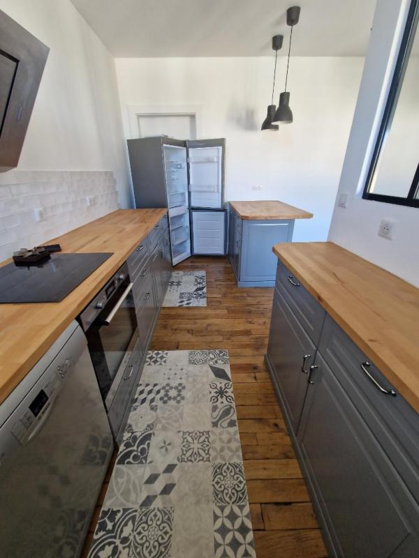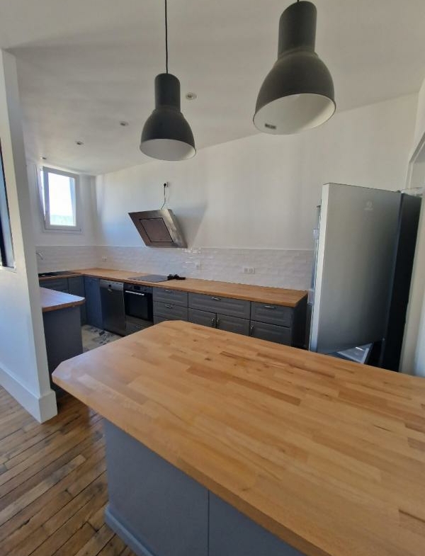 Appartement F4 de 119m² au 2ème étage comprenant une cuisine entièrement équipée (plaque de cuisson, four, hotte, lave vaisselle, frigo) ouverte sur salle à manger, un salon, deux chambres, une suite parentale avec salle d’eau, une salle de bain avec WC, un jardin privatif avec une remise